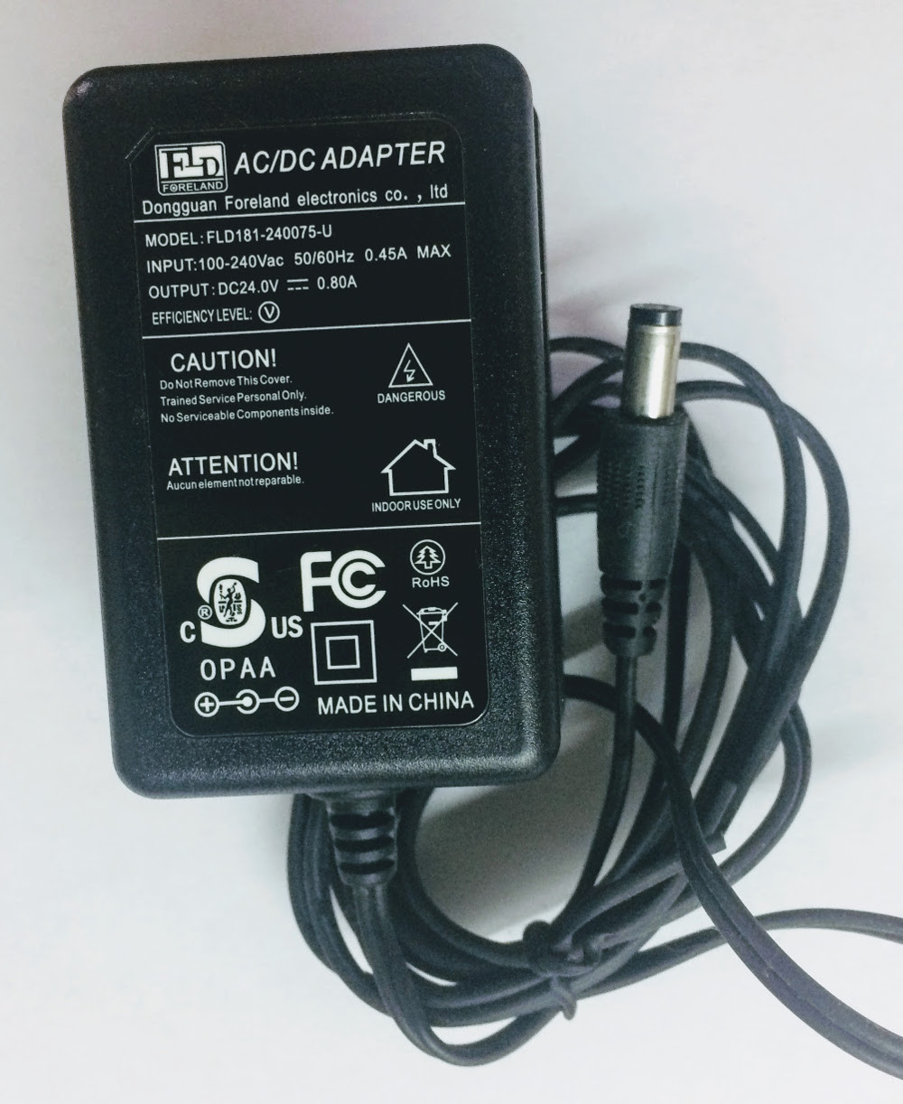 Su voltaje de entrada es de 100 a 240 Vac y su salida es de 24 Vdc. Tiene capacidad de suplir hasta 0.8 amperios por lo que la antena o incluso router y antena juntos podrían consumir hasta 19.2 W en total.