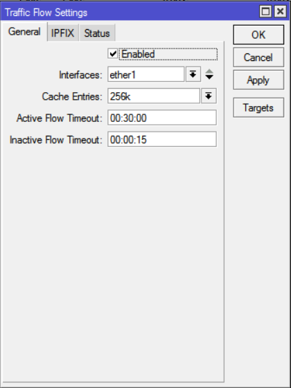 En todo caso para usar estos protocolos se debe primero activar yendo a IP --> Traffic Flow y marcar la casilla de "enabled" en la pestaña de general: